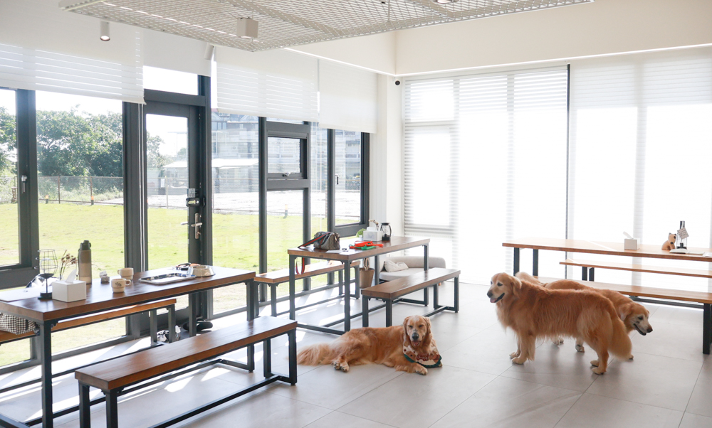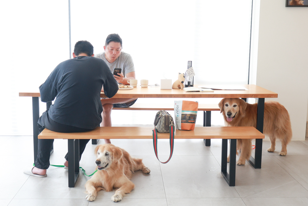 大廳的空間動線也很順,櫃台乾淨明亮,三組桌椅加上寬敞的空間,毛孩們可以自在互動、放鬆,我們也可以與其他客人一起聊聊狗狗日常,充滿生活感與質感兼具的溫柔氛圍。