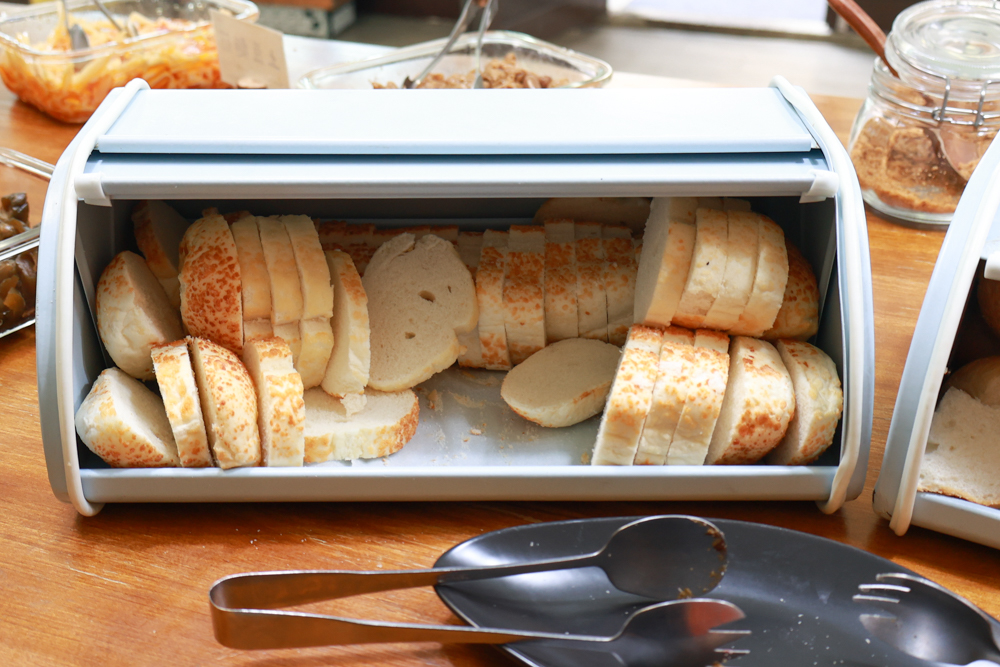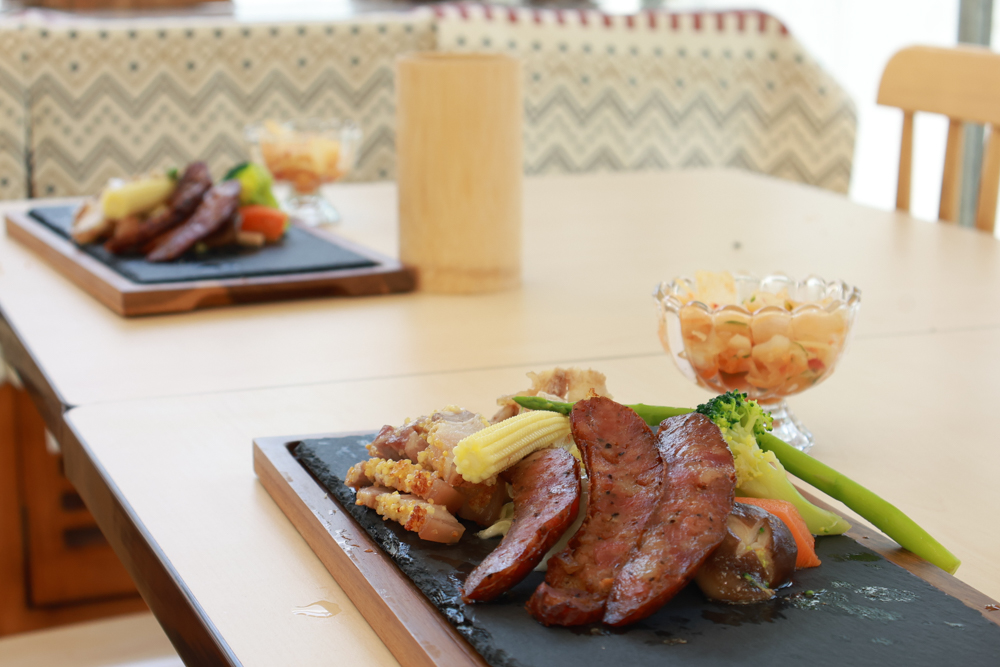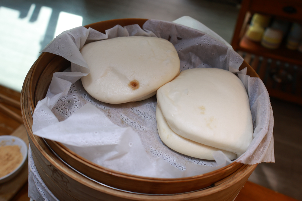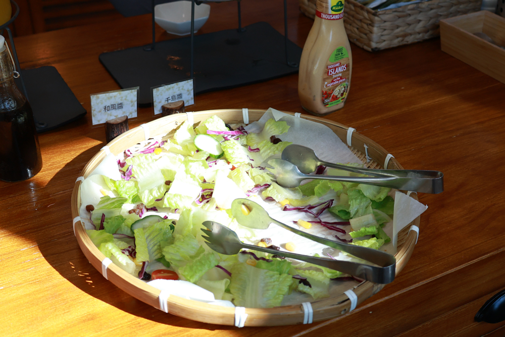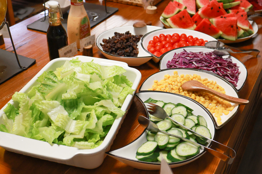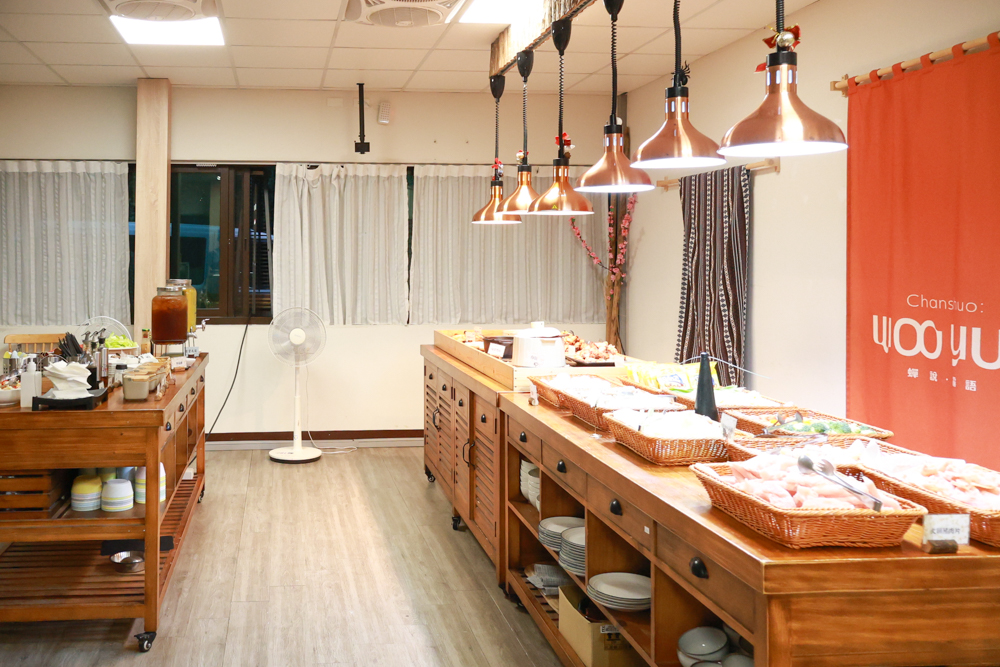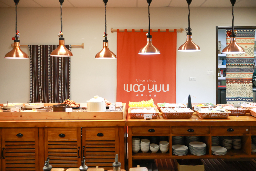 霧語的早餐是中西式自助餐形式,選擇豐富又充滿驚喜。餐檯上擺滿清粥、掛包、馬鈴薯、大阪燒、熱炒青菜、滷蛋、小菜、沙拉、麵包、水果、咖啡與果汁,最吸睛的就是那一鍋滷得香氣四溢的茶葉蛋與刈包DIY。自己挑選肥瘦適中的滷肉、加入酸菜、花生粉、香菜,再夾進熱騰騰的刈包皮裡,早餐可以品嘗到鹹香結合軟綿口感,真的超幸福!