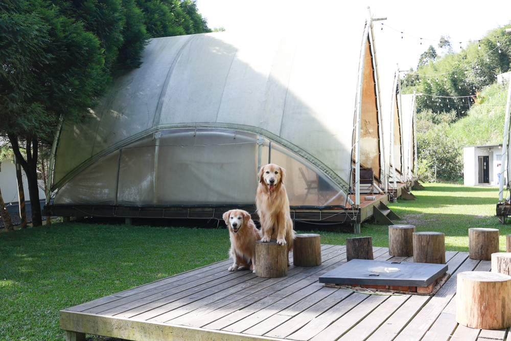 蟬說:霧語 WooYuu有露營車、懶人帳篷以及民宿區,完全不需要自備露營裝備,從迎賓下午茶、手作體驗、自助式高山火鍋、晚餐料理到營火以及早晨早餐,全都安排得剛剛好。山上的氣溫涼爽舒適,空氣裡帶著淡淡木香,帶毛孩來此真的好放鬆、好愜意!!