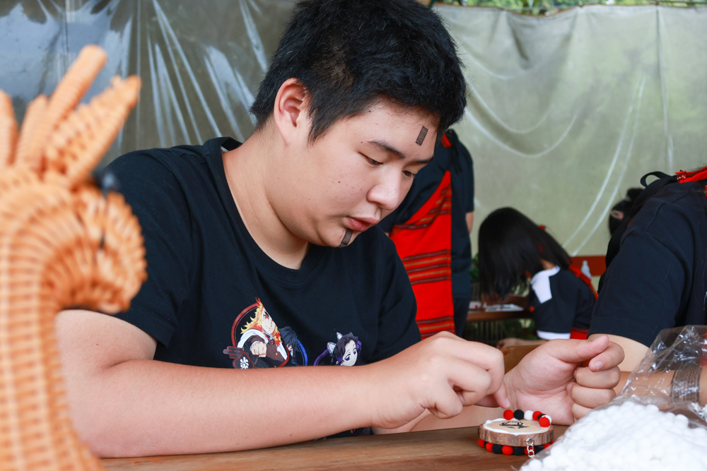 接著製作diy手作以及了解泰雅部落文化傳統!!透過故事、照片與互動解說,老師娓娓道來泰雅文化,原來泰雅族最早的起源在南投,翻山越嶺、遷徙到新竹五峰鄉這片土地定居。每一段遷移、每一次耕作,都蘊藏著他們與自然共存的智慧。聽著他們說部落信仰、語言與狩獵傳統!!