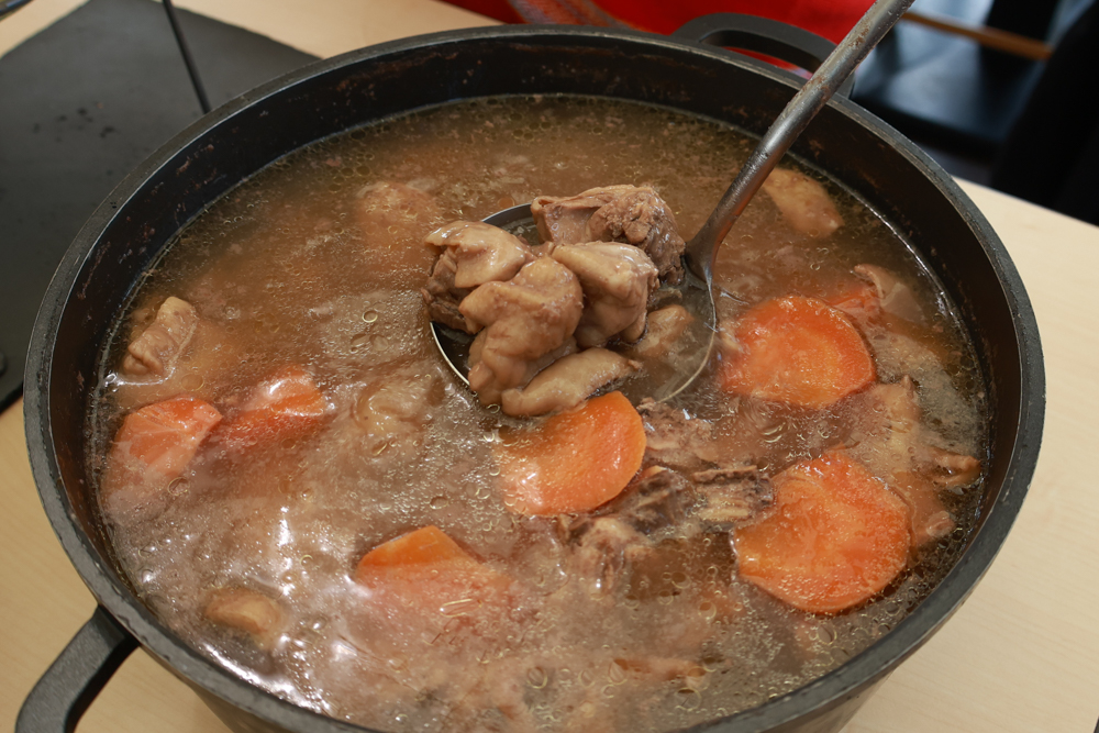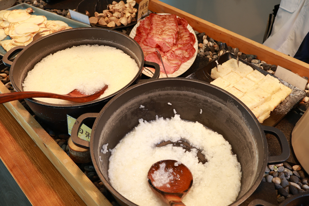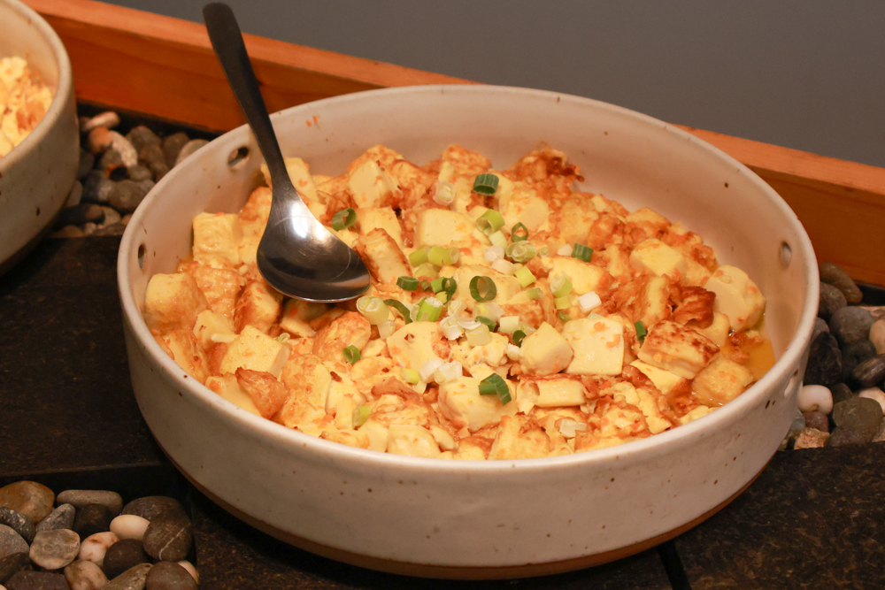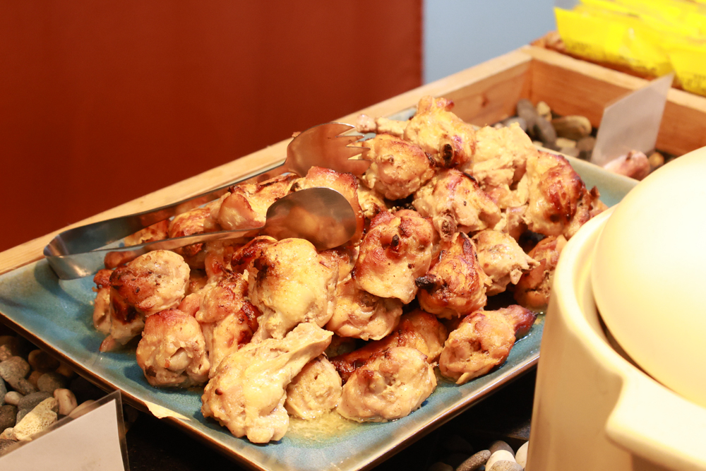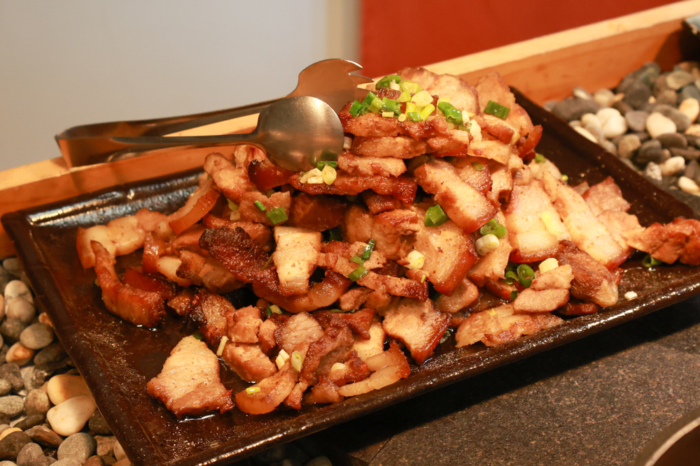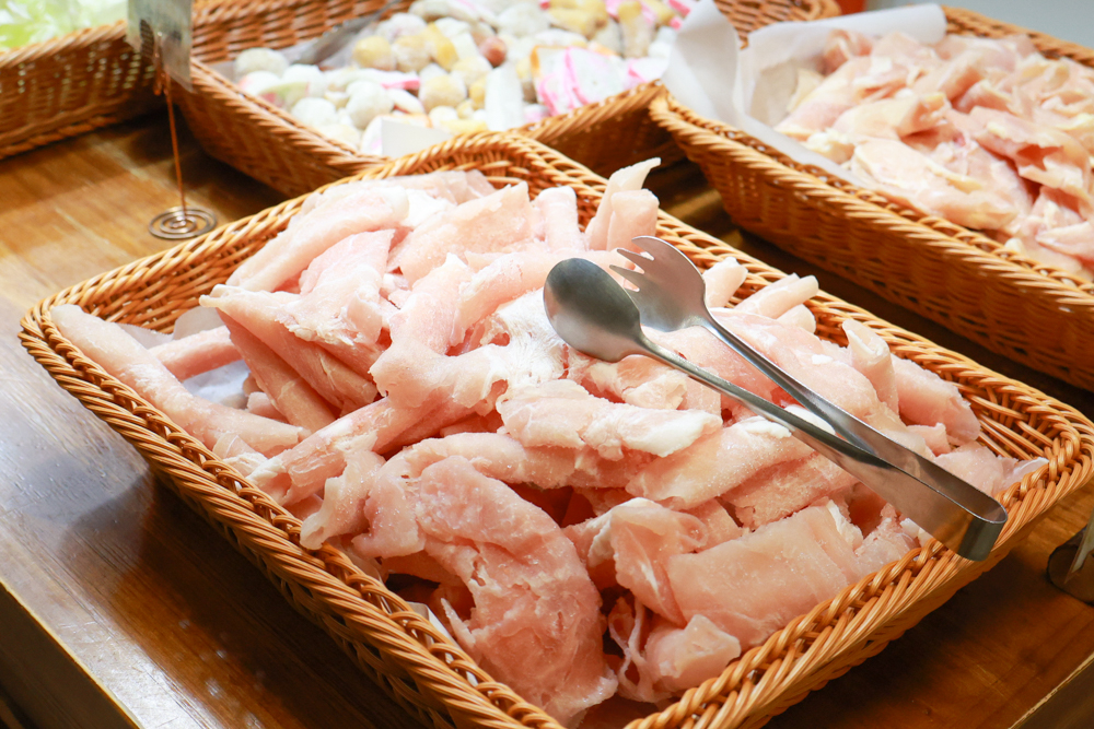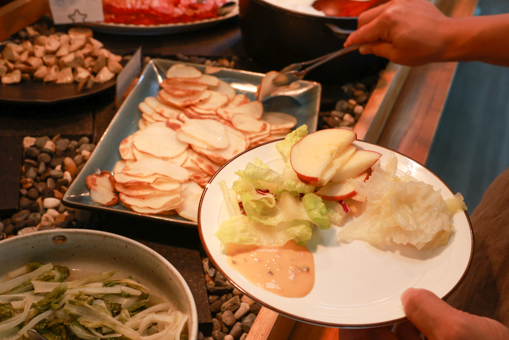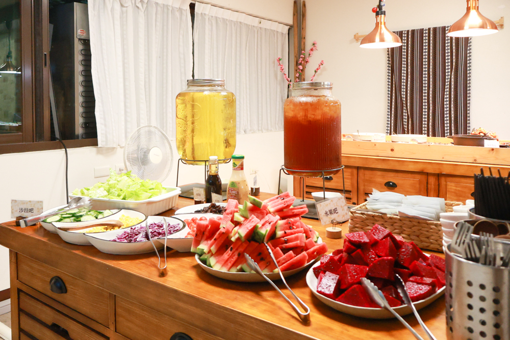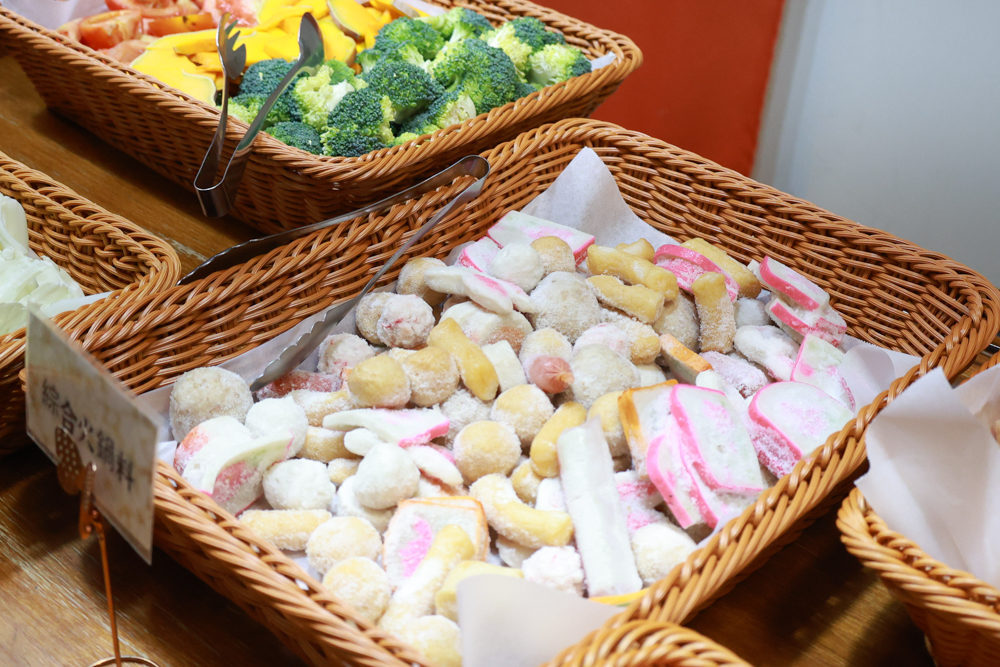 除了火鍋外,熟食區也超豐盛,有滷肉飯、鹹豬肉、炸雞腿、披薩、沙拉、水果與甜點,每一道都看得出用心。特別喜歡那鍋熱騰騰的滷肉飯,滷汁香氣超誘人,讓人忍不住多添了一碗。冷冷的山上吃一鍋熱騰騰的火鍋,滿滿暖意。