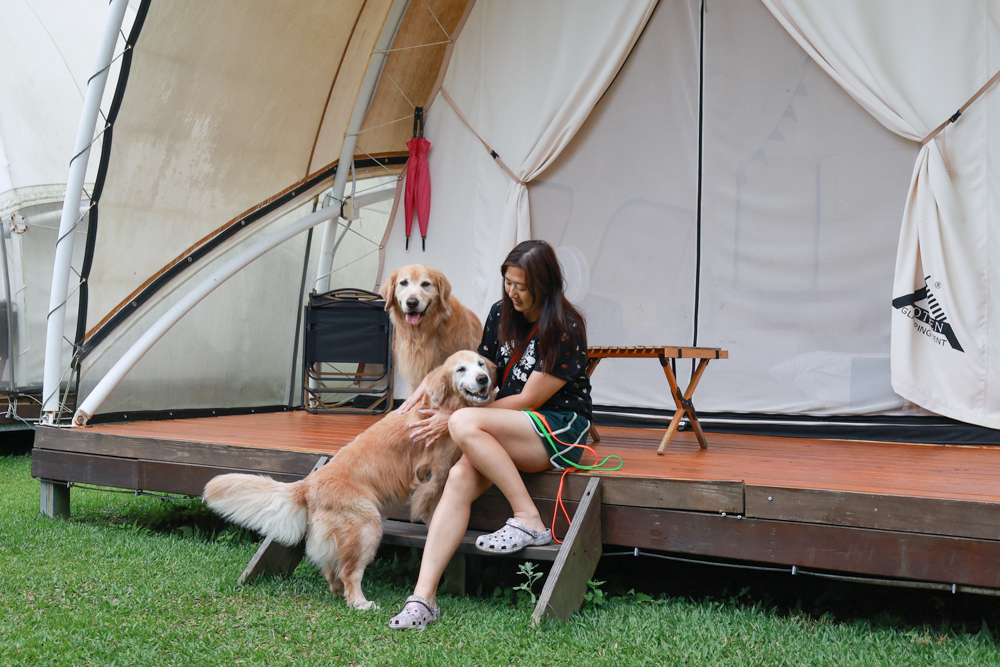 整個園區空氣清新、氣溫涼爽,白天可以在草地散步,晚上能在營火邊放鬆,狗狗們的開心模樣,是這趟旅行最珍貴的畫面。工作人員也都超親切,看到毛孩會主動打招呼、幫忙指路、甚至提醒夜裡降溫要注意保暖,那份溫度感,讓人心裡很暖。