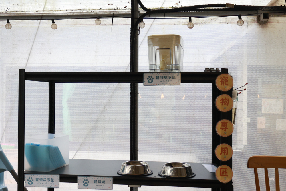 溫室餐廳還貼心的提供寵物水碗、寵物尿布墊、寵物禮貌帶以及取水區!!