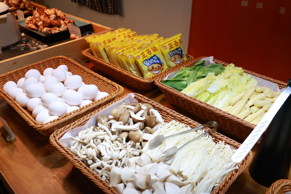 霧語的晚餐是高山火鍋自助吧,也是蟬說系列中唯一提供火鍋Buffet的露營區。昆布湯清爽甘甜,天冷喝起來非常暖和!!食材部分以在地小農的新鮮蔬菜為主角,一整桌翠綠的高山青菜,新鮮清甜;肉片厚薄適中、口感紮實;還有王子麵、魚板、魚丸、豆腐、香菇、南瓜等豐富火鍋配料,全部都是新鮮現切補盤,完全不馬虎。
