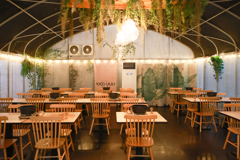 天色漸暗、霧氣瀰漫時,就是蟬說:霧語最迷人的時刻。我們準時在六點入場用餐,迎面而來的是陣陣湯香與熱氣,整個溫室餐廳被火鍋蒸氣!!